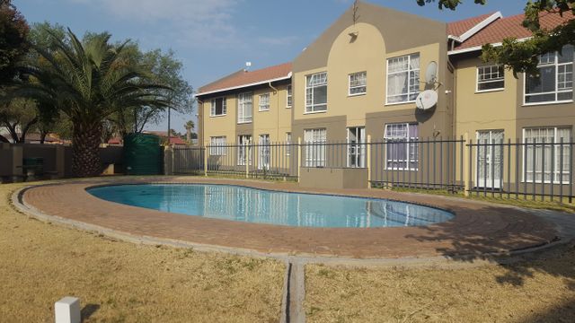 When is it comes to safety and close up and go . If you can have that why not ! This complex is well know in Verwoerdpark , well maintained and look after complex . There is security by the gate , Pool and braai area with kids play ground too . The townhouse offers 3 bedrooms , 1 bathroom , open plan lounge and kitchen . Features for this townhouse are