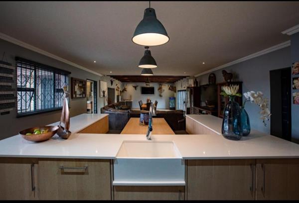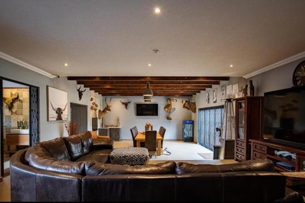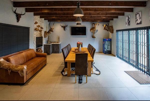 A built-in braai in the dining room, with stacking folding doors that open onto the swimming pool areaideal for entertaining.
