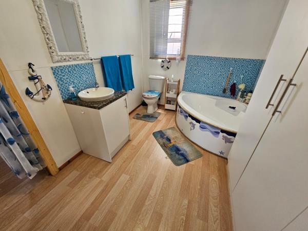 The main house features three cozy bedrooms, all with built-in cupboards, and two modern bathroomsone being an en-suite to the master bedroom.