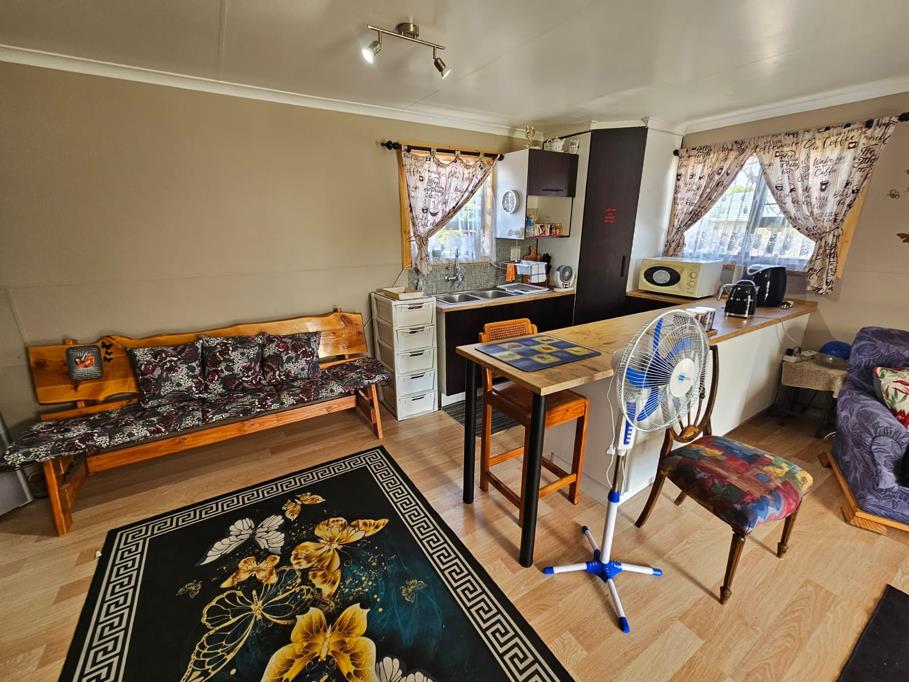 The unique wooden flatlet is a wonderful addition, complete with a spacious open-plan lounge, dining, and kitchen area, a bedroom with built-in cupboards, and an en-suite bathroom. This flatlet is ideal for extended family or as a rental unit for extra income.