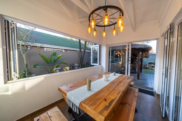 From the lounge, stacker doors open to a covered patio with stacker windows that overlooks the solar heated pool and a lapa with its own built in braai creating an ideal space for year round entertaining. The property also offers a double garage and low maintenance garden.