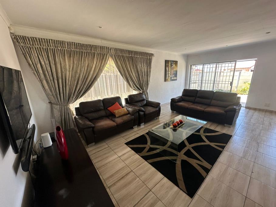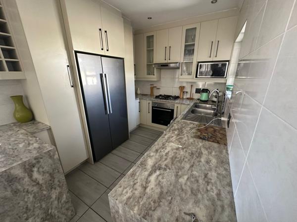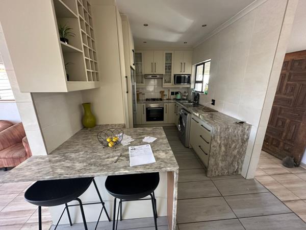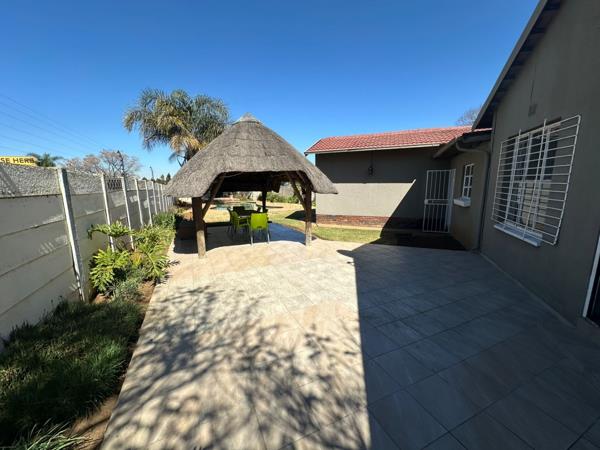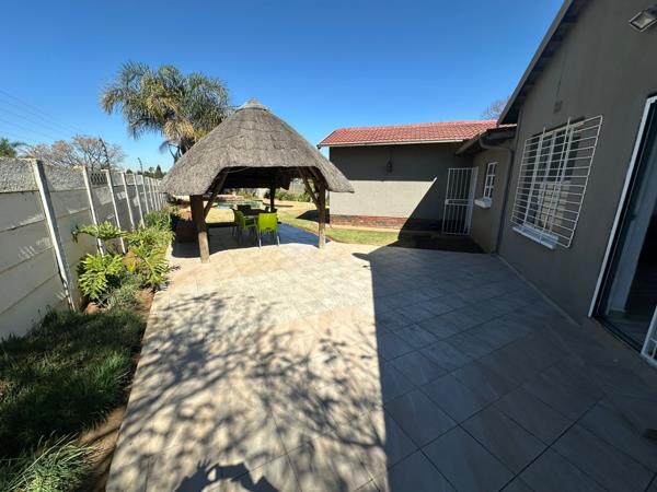 Adding even more value, the property boasts a private flatlet with its own bedroom, open plan living area, and kitchenette ideal for extended family, guests, or rental income. Step outside and enjoy a sparkling swimming pool paired with a thatched Lapa, perfect for summer braais and outdoor relaxation. A double carport provides secure parking, completing this impressive home.