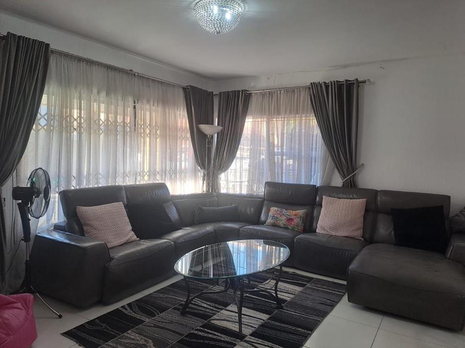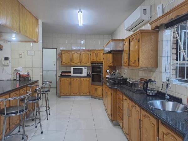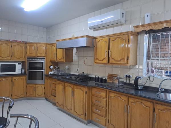 The bright entrance leads in to a main lounge to the right, to you left you are met buy a spacious dining room, perfect for large family dinners, further down the passage is the family lounge, leading into a spacious kitchen with plenty of cupboard space, a pantry and a scullery and an aircon.