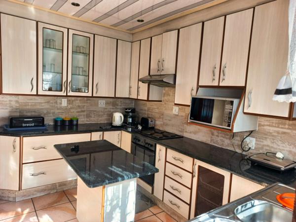 Welcome to this inviting 4-bedroom family home in Actonville Ext 2, Boksburg, thoughtfully designed for comfort and modern living. The heart of the home is its open-plan kitchen, featuring a stove with a cooker hood, ample built-in cupboards, and a unique center nook that comfortably seats four people perfect for casual dining or family gatherings. The kitchen boasts stylish tiled flooring, ensuring easy maintenance.