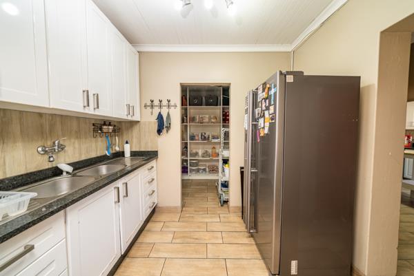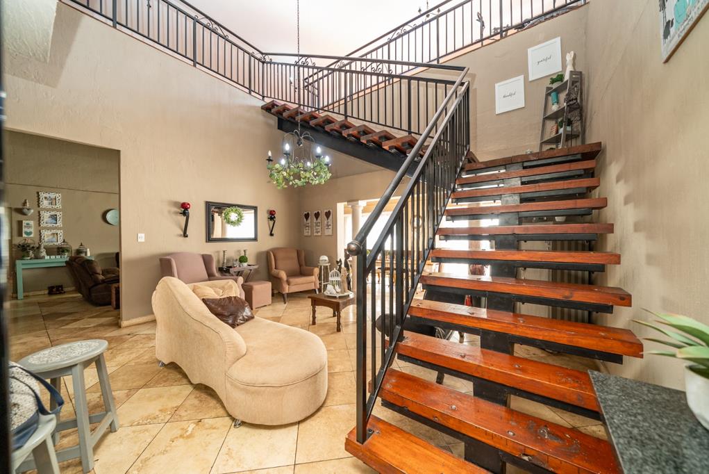 Entertainment is effortless with a pool, jacuzzi, built-in bar, braai, boma area, and three double garages. Sustainable living is supported by a borehole and solar system.