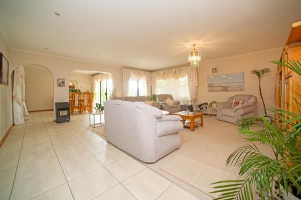 The main home exudes comfort and sophistication, featuring three spacious bedrooms, with the option of a fourth or a study, to cater to various lifestyle needs. It includes two luxurious full bathrooms, two inviting lounges that offer ample space for relaxation, and a dining room that effortlessly flows into the entertainment area. The modern kitchen is a chefs dream, complete with a separate scullery and laundry room for added convenience. The main bedroom is a true retreat, offering abundant space and a walk-in closet for the ultimate storage solution. Step out onto the patio with a built-in braai and enjoy tranquil outdoor living. The home also boasts two double garages, providing ample space for vehicles and additional storage.