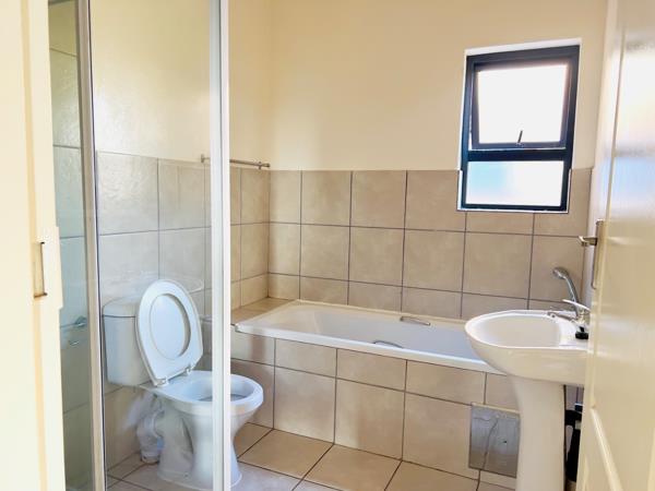 The two generously sized bedrooms come with built-in wardrobes and easy access to the full bathroom, which includes both a shower and a bathtub. Large windows invite natural light into every room, enhancing the warm and welcoming ambiance.