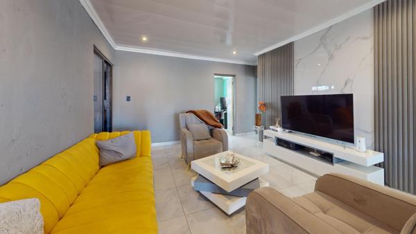 Secure parking is provided by a double-capacity garage with an automated door, along with an additional carport. The yard is fully paved and includes a braai area, offering low-maintenance outdoor living and great entertaining potential. Both the automated gate and remote-controlled garage add to the homes appeal and security.