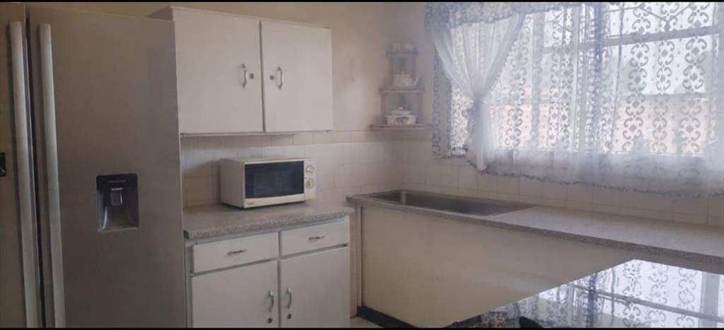 This well-proportioned home offers spacious, tiled bedrooms with ceiling fans, including a large main bedroom. The living areas are open plan and tiled, featuring a generous lounge and a spacious dining room with a convenient serving hatch. The kitchen is practical with melamine finishes and steel fittings, complemented by a four-plate stove. The home includes a standard bathroom with a shower over the bath, as well as a separate guest toilet.