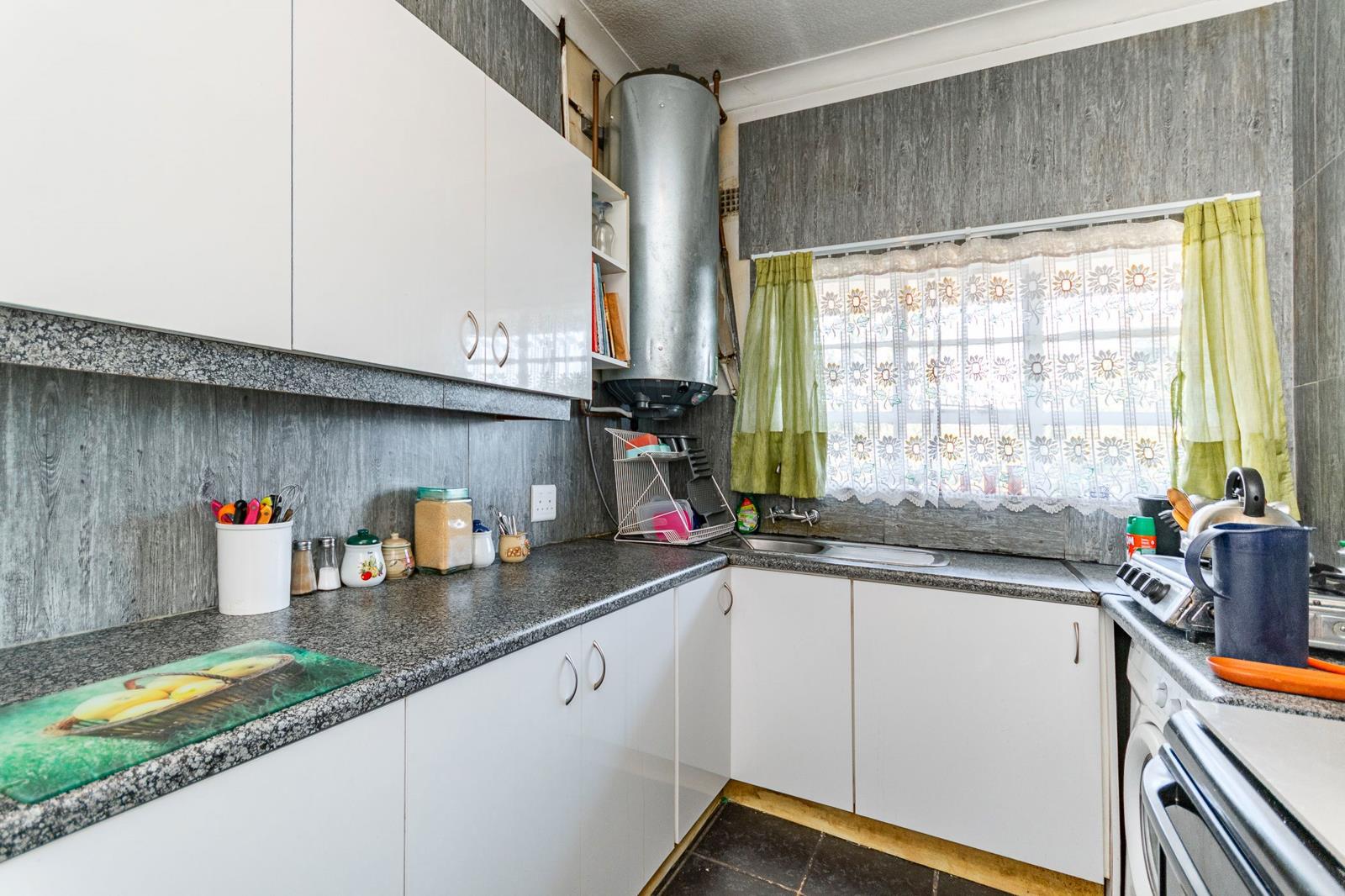 The kitchen is functional and well laid out, offering sufficient cupboard space for everyday convenience. The bathroom is neat and practical, completing a home designed for easy living.
