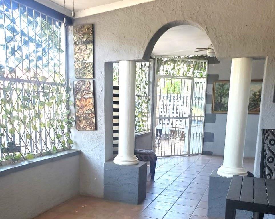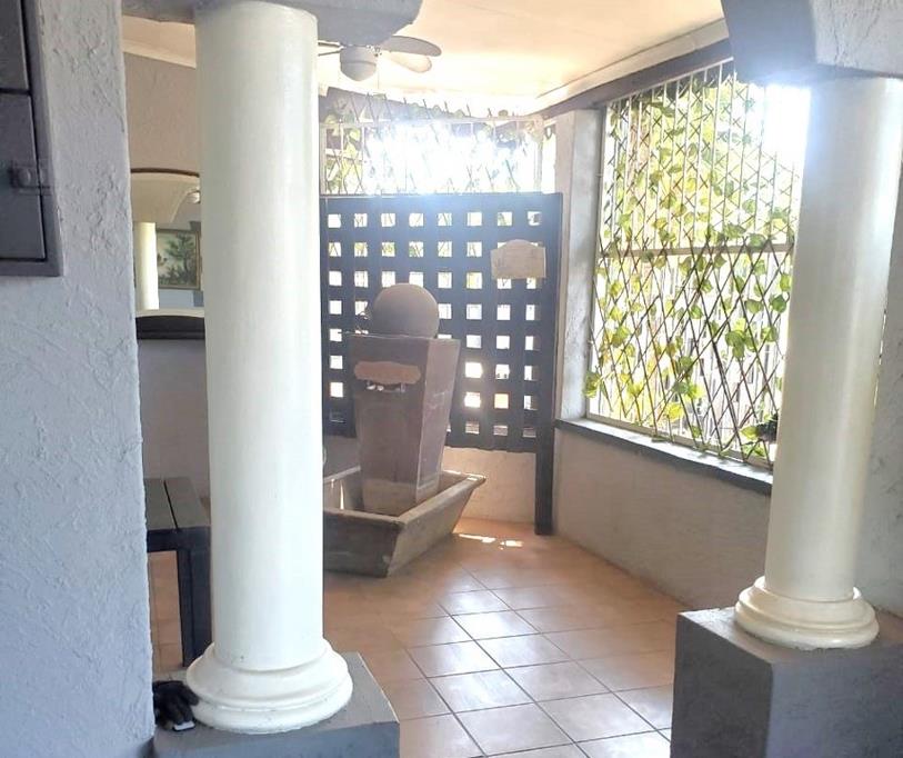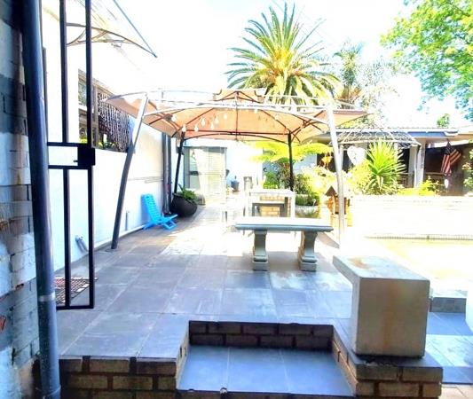 This semi-detached house shares a wall between the bedrooms, but the wall between the 2 lounges has an open arch, allowing access from the one to the other. Each semi has their own entrance from the shared stoep and each has a back entry to the deck and entertainment area.