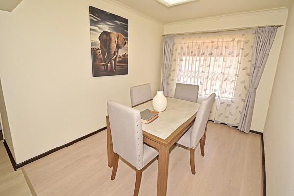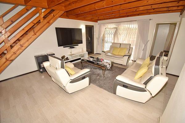 The home offers three beautifully appointed bedrooms with built-in cupboards, including two generously sized rooms on the ground floor and a spacious, private upstairs suite. Complementing the accommodation are three modern bathrooms, thoughtfully designed for added convenience.