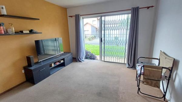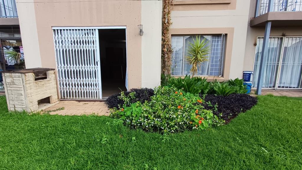 Step outside to your private paved patio, complete with a built-in braai, perfect for entertaining or enjoying quiet evenings. This outdoor area is complemented by a well-kept garden bed and a green lawn, offering a touch of nature. Security is enhanced with security gates on the entry door and sliding door, as well as burglar bars on windows.