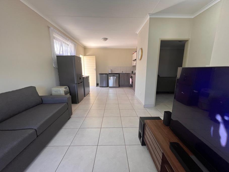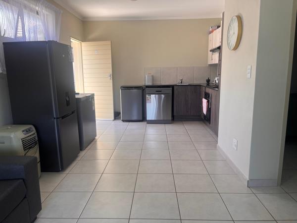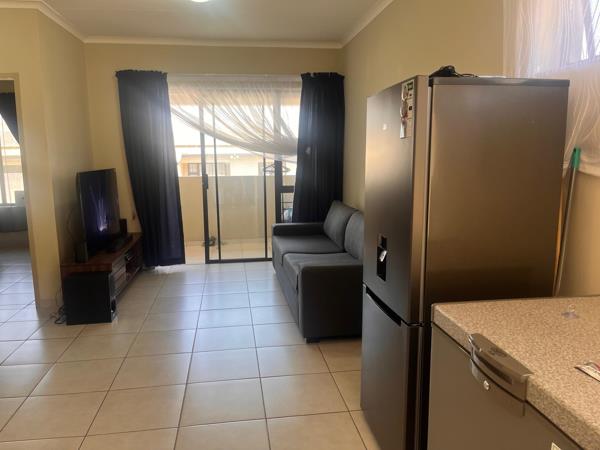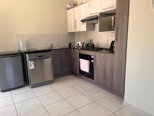 The apartment features an open-plan living area, with plenty of natural light, flowing effortlessly into a modern kitchen complete with ample cupboard space, quality countertops, and space for your essential appliances. Step out onto your private balcony, perfect for a quiet coffee or sundowner after a busy day.