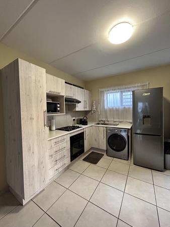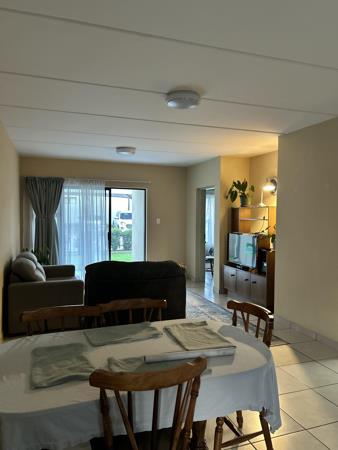 Featuring two bedrooms with ample built-in cupboards and two neat bathrooms main en-suite, this unit is designed for both convenience and privacy. The open-plan layout seamlessly connects the spacious lounge, dining area, and modern kitchen.