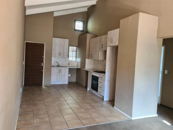 The home welcomes you into an open-plan kitchen with an abundance of cupboard space, flowing seamlessly into the living area. The living space leads out onto a small patioperfect for relaxing while overlooking the complex.