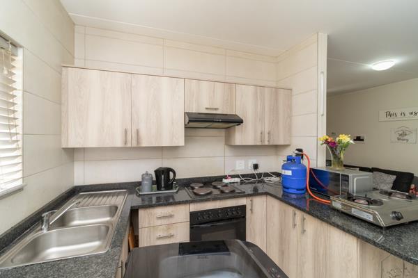 The tranquil atmosphere allows you to relax and unwind in your open plan living space, featuring a spacious lounge with sleek, modern, tiled flooring throughout. Enjoy a seamless flow to the patio, complete with your private built-in braai, while snazzy stacker doors open to your very own private, enclosed garden.