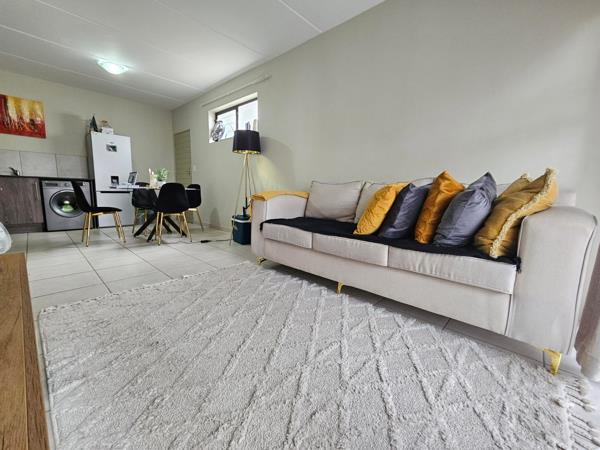 Step into a fully tiled, open-plan layout that seamlessly connects the sleek kitchen, cozy lounge, and an enclosed patio perfect for indoor-outdoor living or entertaining. Both bedrooms are generously sized with built-in cupboards and share a modern full bathroom, offering space and style in equal measure.