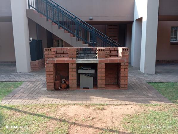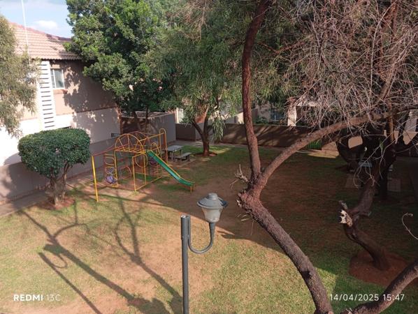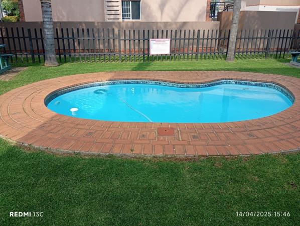 The complex is very well kept with a manicured garden.There is a communal swimming pool with a braai area. There is another playground for small kids also with a braai area to relax.There is a prepaid meter for electricity