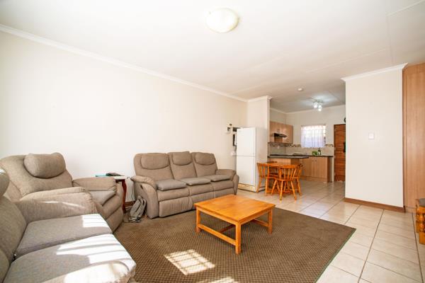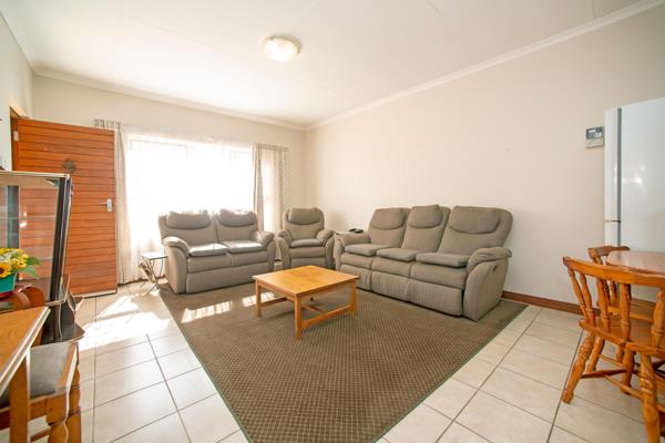This charming facebrick simplex is the perfect blend of comfort, security, and convenience ideal for those looking to enjoy a relaxed retirement lifestyle. Pet-friendly and low-maintenance, the home offers three well-sized bedrooms, each with built-in cupboards and neatly maintained carpets. Two bathrooms are thoughtfully fitted with rail aids to ensure safety and ease of use.