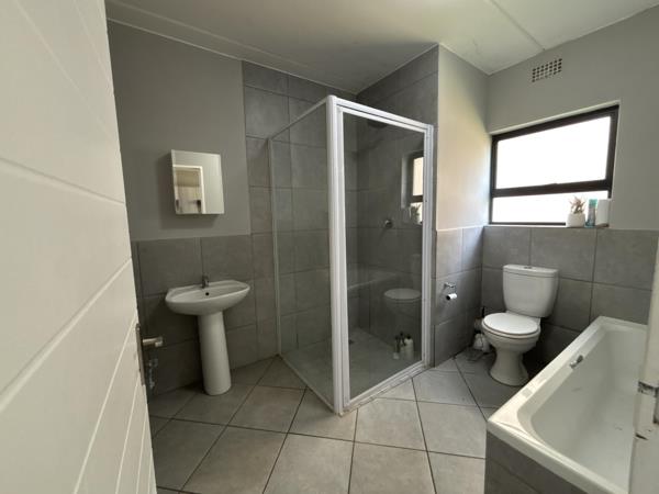 This stylish and modern ground-floor unit offers 2 spacious bedrooms and 2 bathrooms, including a main en suite. The open-plan layout flows effortlessly from the kitchen and living area onto a private, neatly manicured garden perfect for relaxing or entertaining. Enjoy your built-in braai area, enhanced by stacker doors and a large concealed storage cupboard for added convenience.