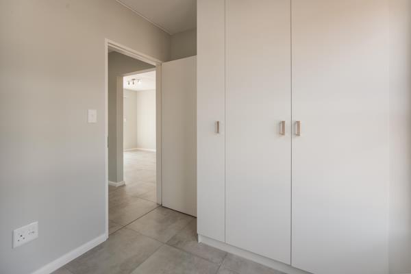 -Two sunlit bedrooms with built-in cupboards and easy-to-maintain tiled flooring