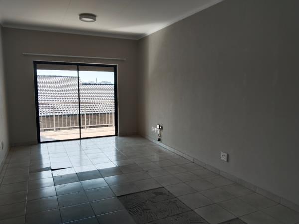 Sunny starter unit with 2 beds and 2 baths, open plan kitchen and lounge leading onto a balcony.