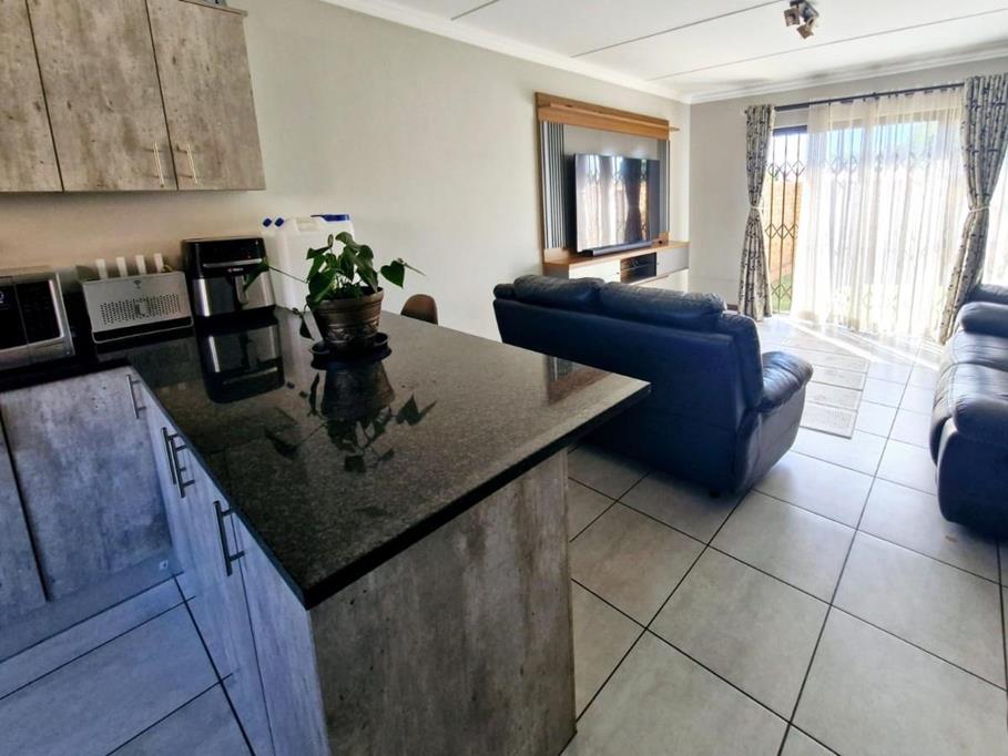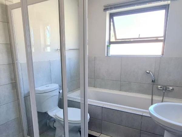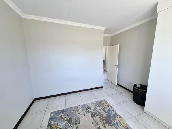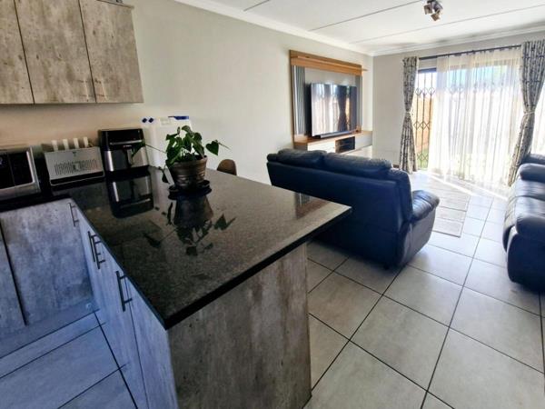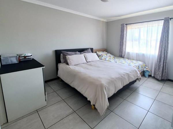 This stylish two-level home offers an open-plan lounge and kitchen and a guest toilet. Upstairs features three bedrooms, including a main en-suite and a family bathroom. The outdoor space includes a grassy courtyard and paved back courtyard, a single garage, and a single carport. Extra features include a solar geyser and linen cupboard. Security is enhanced with burglar bars and a remote-access main gate. With potential rental income of R12,900 per month and vacant on transfer, this property is ideal for homeowners or investors