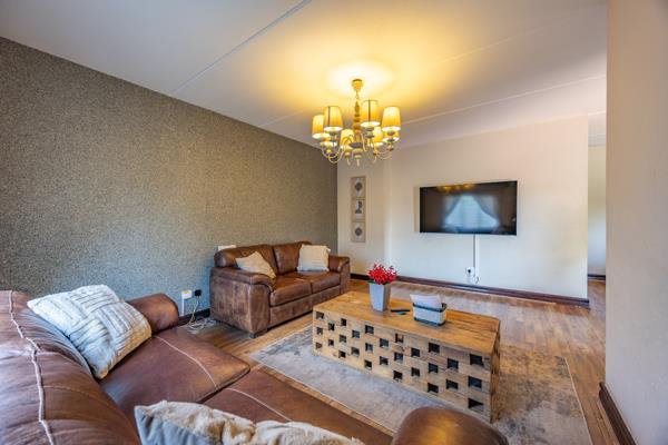 The ground floor welcomes you with a warm and inviting layout. The kitchen features elegant granite countertops, an electric stove and oven, space for two appliances, a pantry, and room for a single-door fridge. A convenient guest toilet and additional storage space under the stairs add to the homes functionality. The open-plan dining area flows seamlessly into the spacious lounge, highlighted by a modern feature light and finished with beautiful laminated flooring that extends throughout the home. Large windows fill the space with natural light, creating a bright and welcoming atmosphere.