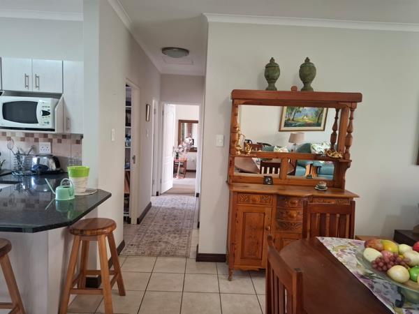 Lounge opens to a patio with louver roof and shade covers leading to a beautiful private garden. 1 en-suite bathroom with a shower toilet, wash basin and tiled to the ceiling. 1 Bathroom with Bath, basin and toilet tiled to the ceiling. Garage. Inverter, solar and power backup installed This Stunning Retirement Estate offers various facilities like garden services, library, 24-hour security, 24-hour frail care, nail bar, beauty salon and hair salon ,restaurant, secure walking trails, Village bus Shuttle. Walking distance to Brentwood Mall. Water and building insurance included in the levy. Unit is equipped with panic button assistance linked to the frail care of emergencies.