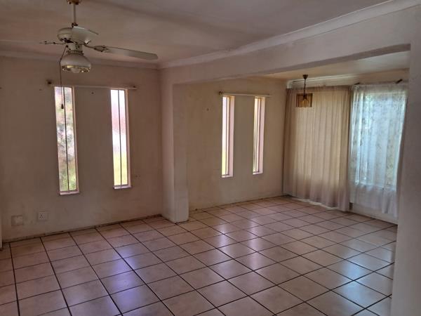 The three bedrooms are well-proportioned, each benefiting from natural light through large windows, featuring security bars and built-in cupboards. The property includes two bathrooms one a full bathroom with a bathtub, and another compact, fully tiled bathroom with a shower. While functional, both bathrooms and bedrooms present an opportunity for buyers to personalise and modernise to their taste.