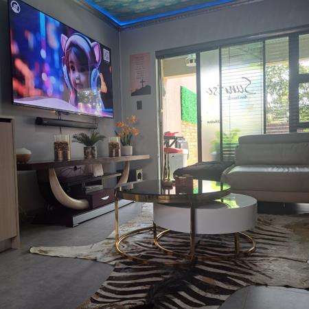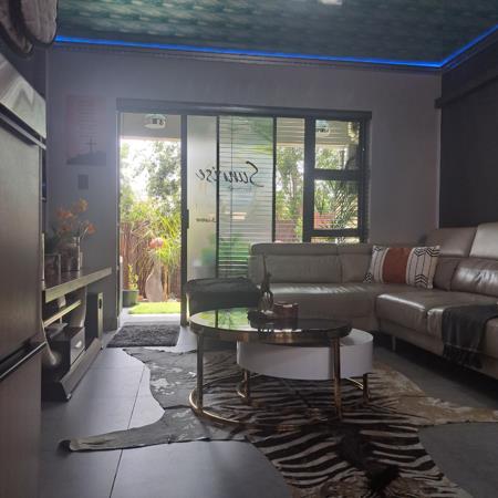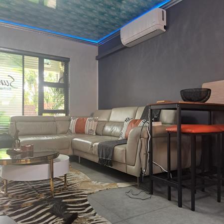 Indulge in the comfort of air conditioning and the convenience of two designated parking bays. The state-of-the-art biometric security system provides unparalleled peace of mind. The charming patio, adorned with a meticulously maintained garden, features a built-in braai and a luxurious heated splash pool, perfect for serene relaxation.