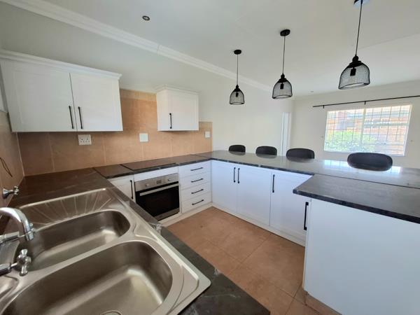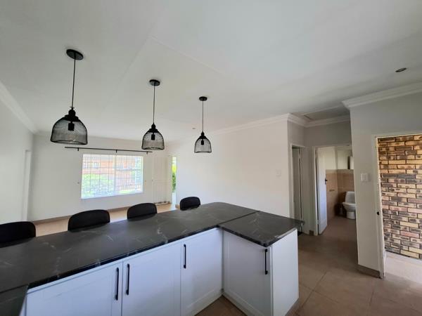This meticulously presented 2 Bedroom, 1 Bathroom residence offers an exceptional opportunity within the esteemed Norton Park Retirement Village in Benoni, South Africa. Spanning 81.00 sqm of refined living space, this property is designed for comfort and convenience. The interior boasts a contemporary open plan layout, seamlessly integrating the living area and a modern kitchen. The kitchen is appointed with sleek white cabinetry, dark marble effect countertops, a built-in oven, and a stylish breakfast bar illuminated by elegant pendant lighting. Neutral tiled flooring and crown molding extend throughout, creating a cohesive and sophisticated aesthetic.