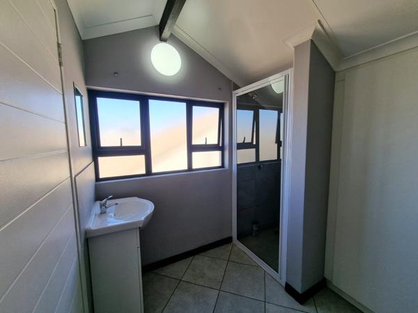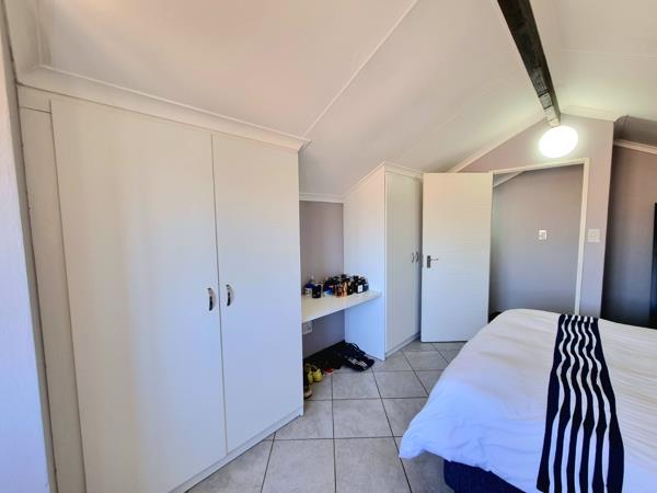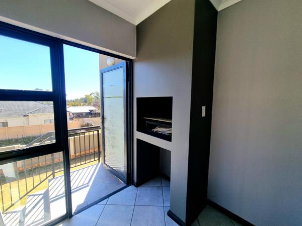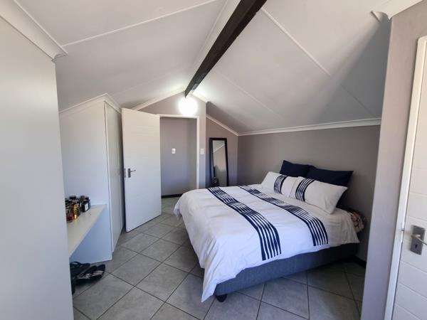 The home features a spacious loft-style master bedroom with en-suite bathroom, providing a private retreat. The kitchen is beautifully finished with granite countertops, ample cupboard space, and flows seamlessly into the living area. A built-in braai with sliding windows creates the ideal setting for indoor-outdoor entertaining.