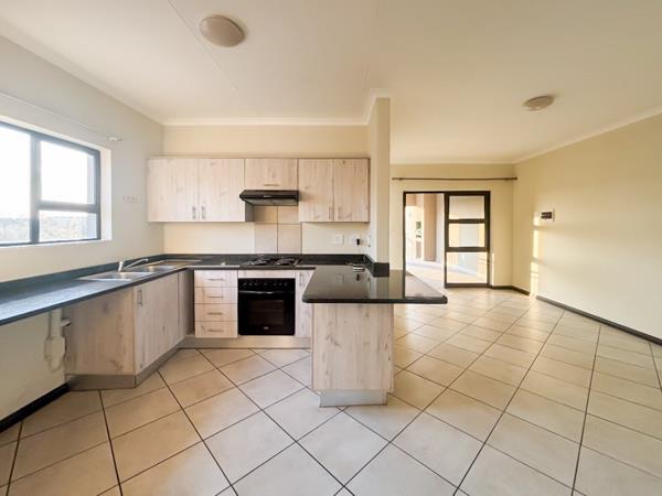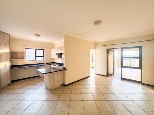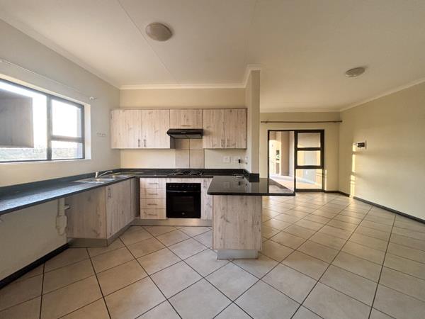 A spacious lounge seamlessly connects to the dining area and a stylish kitchen, complete with a gas hob and ample cupboard space.