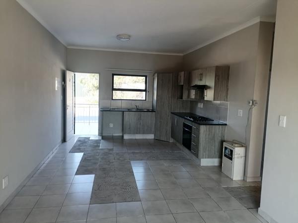 The two bedrooms apartment is located at Stanton Heights estate in Norton Park, Benoni. The apartment has two modern spacious bedrooms with modern build-in wardrobes, two bathrooms, open plan kitchen and lounge and balcony. The apartment is located on the first floor of the two storey building. The main bedroom has an ensuite and is very spacious. The kitchen has build-in cupboards with modern finishes.