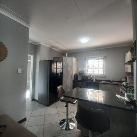 An open plan kitchen with lots of my Bics, a spacious lounge, an entrance with a build in braai