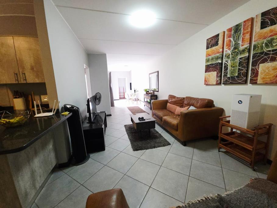 The open-plan layout seamlessly connects the living, dining, and kitchen areas, creating a bright and airy atmosphere ideal for modern living. The kitchen features a gas stove and solar geyser, ensuring energy efficiency and lower running costs.