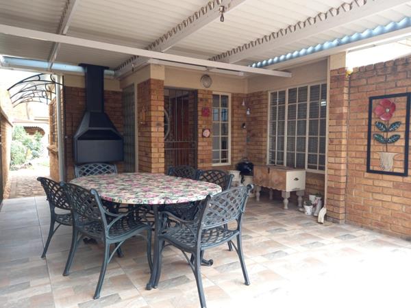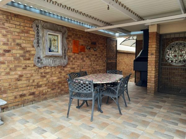 There is a covered entertaining area with a fitted braai at the entrance plus an enclosed patio leading to the garden. The patio could be used as an office.
