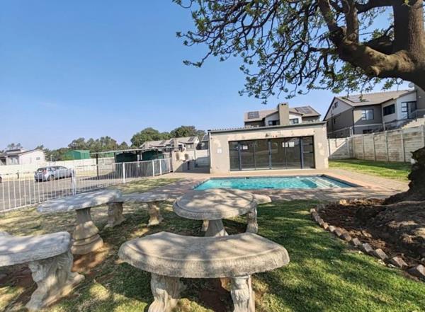 2 bedroom, 1 bath sectional title, spacious townhouse in a secure community. Open floor lounge and dining and a fully tiled bathroom. Kitchen with a gas stove and pre-paid electricity. Backup solar and borehole, clubhouse and a communal swimming pool in a secure complex with access control and 27/7 security.