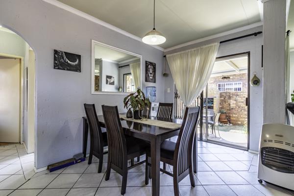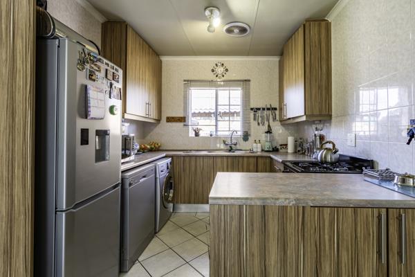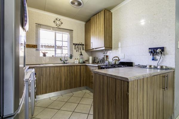 The home features two spacious bedrooms and a full bathroom, all neatly presented and ready to move in. A lovely open-plan layout connects the inviting lounge and dining area, creating a warm and functional living space. The standout kitchen is both stylish and practical, offering ample storage and a full gas stove and oven perfect for cooking during load-shedding or for anyone who enjoys energy-efficient living.