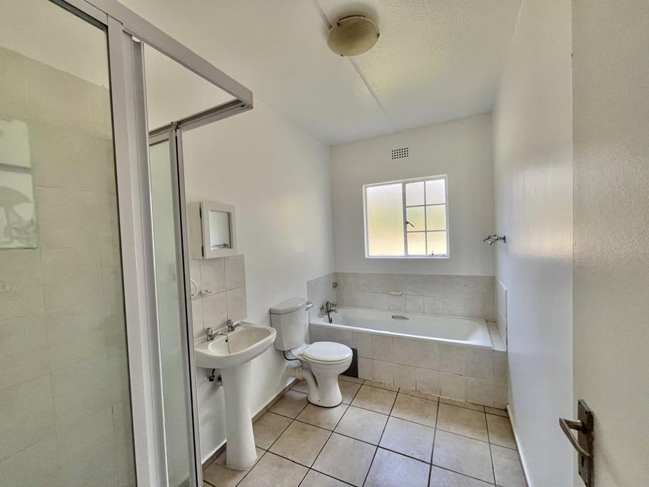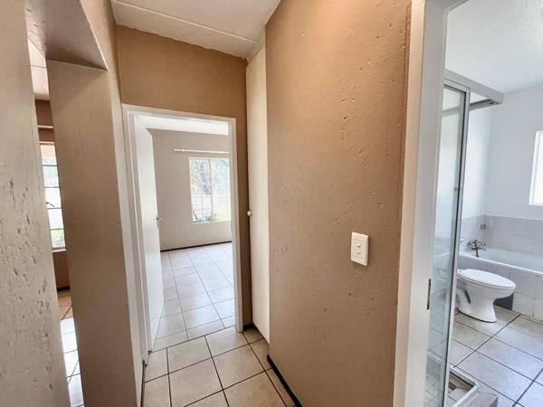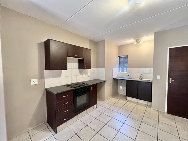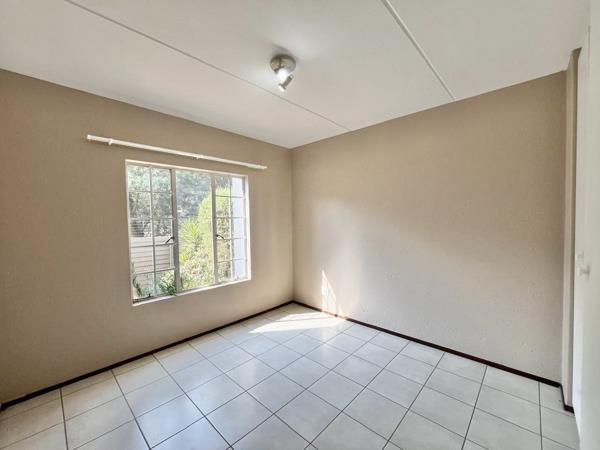 This beautiful corner ground floor townhouse offers 2 spacious bedrooms with built in cupboards, 1 bathroom equipped with a shower, bath, basin & toilet. Open plan kitchen and lounge area which is fully tiled leading out through a sliding door into the garden area. Complex offer a full entertainment area with a built in braai and sparkling blue pool for entertaining the family and friend.