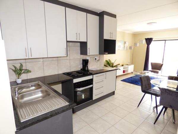 Contemporary, newly constructed sectional title apartments offer two bedrooms, accompanied by one stylishly designed bathroom. The fully tiled open plan lounge, dining room, and kitchen are adorned with elegant granite countertops. Ground floor units include a private enclosed garden, patio, and permit one pet.