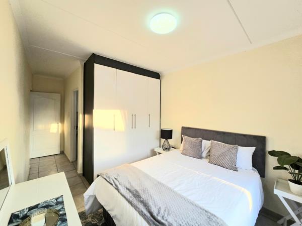 This residence includes a charming balcony and built-in cupboards in each bedroom, ensuring ample storage. The master bedroom boasts an en suite bathroom for added privacy and comfort.