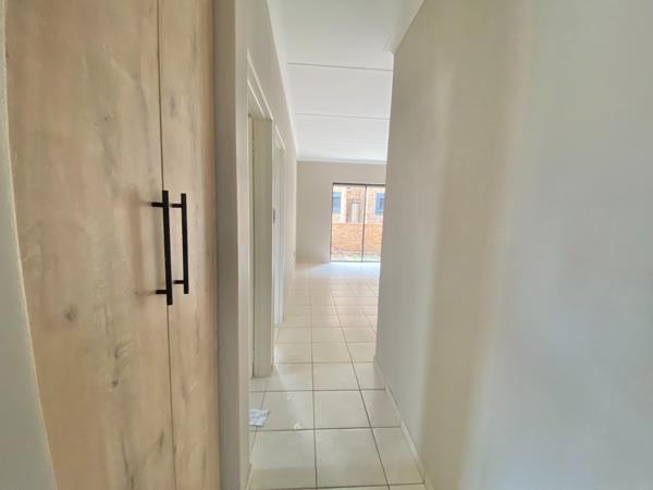 Nestled in a secure, well-built complex, this move-in-ready 3-bedroom, 2-bathroom apartment effortlessly combines modern comfort with practical living. The bright, open-concept layout features a sleek, well-appointed kitchen with ample counter space, a cozy lounge perfect for relaxation, and a sunlit outside area ideal for morning coffee or evening entertaining. The spacious main bedroom has a private en-suite bathroom and generous built-in wardrobes, while the two additional bedrooms include stylish built-in storage solutions. Residents enjoy peace of mind with 24-hour security, electric fencing, a manned security post, and a secure access gate with intercom. Practical perks include a covered parking spot, plenty visitors parking, making this home as versatile as it is inviting. Perfectly positioned for first-time buyers seeking a low-maintenance lifestyle or investors eyeing rental potential, this property delivers a rare blend of safety, convenience, and modern charm.