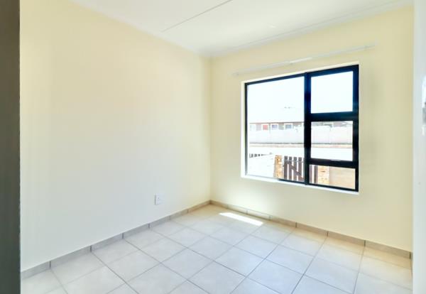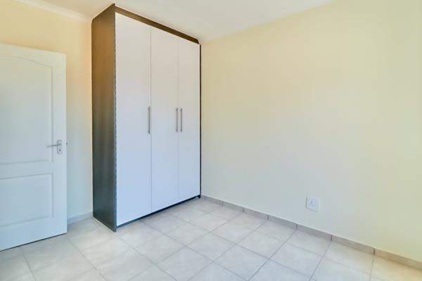 The two well-sized bedrooms each include built-in wardrobes, while the bathroom offers a bathtub along with a sink and toilet for convenience. From the dining room, step out onto your private patio an ideal space for family braais and relaxed outdoor living.