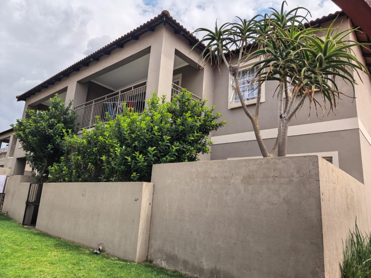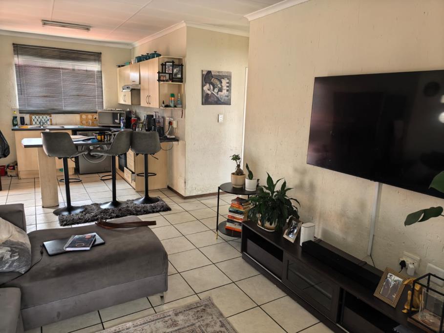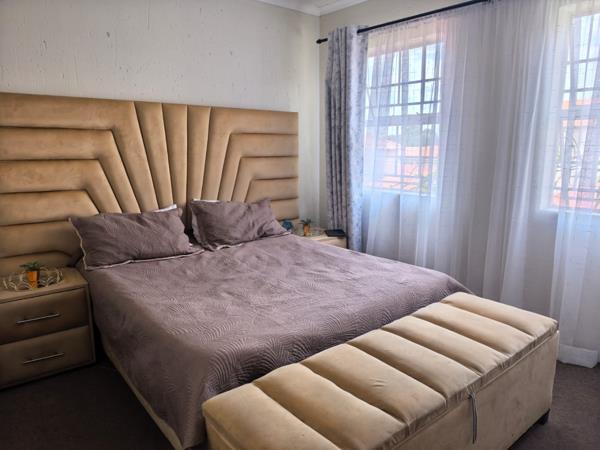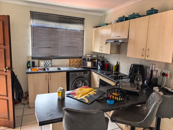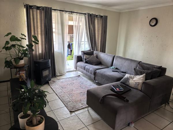 The property presents a modern architectural style with a warm grey exterior and balconies, set within a well-maintained complex. Lush landscaping, including a distinctive mature aloe tree, enhances the welcoming first impression, offering a pleasant suburban environment. Step inside to discover a thoughtfully designed 73 sqm floor plan featuring an open-plan living and dining area, perfect for contemporary lifestyles. Tiled flooring throughout ensures practicality and ease of maintenance. The spacious lounge area benefits from ample natural light, with a sliding glass door providing access to an outdoor space. The kitchen is efficiently laid out with light wood-look cabinets, black countertops, a double sink, and an integrated electric hobstove. A functional island with bar seating creates a versatile space for casual dining or entertaining. This apartment offers two comfortable bedrooms, each designed to provide a private retreat. The main bedroom boasts a large, stylish upholstered bed with an impressive headboard, complemented by coordinated furniture and excellent natural light from large windows. The single well-appointed bathroom serves both bedrooms. Enjoy the fresh air and residential views from your private tiled balcony, an ideal spot for relaxation. The property includes two dedicated parking spaces, adding convenience for residents. Located within a security complex, this home offers peace of mind and a secure living environment. Situated in the suburban area of Cloverdene, Benoni, this property offers a convenient location within South Africa''s Gauteng province. Residents benefit from easy access to local amenities and a community-focused atmosphere.