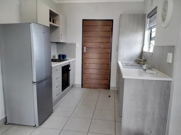A standout feature of this property is its open-plan design, seamlessly connecting the kitchen and lounge area. This modern layout creates a bright, airy, and welcoming living space that is perfect for both everyday living and entertaining. The kitchen is well-positioned and functional, offering sufficient cupboard space and room for appliances, while flowing naturally into the lounge. This creates a cozy yet spacious area where family and guests can comfortably gather.