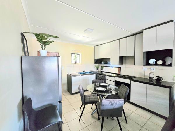 The home offers a functional layout featuring a welcoming lounge and dining area that flows seamlessly into a well-equipped kitchen. Built-in cupboards provide ample storage, while the patio and private garden create the perfect space for relaxing or entertaining outdoors. Pet lovers will appreciate that the property is pet-friendly, allowing you to truly feel at home.