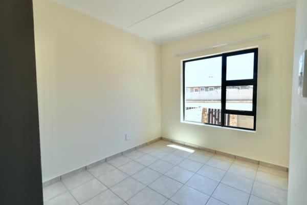 All the floors are tiled.Two bedrooms ,one modern bathroom and an open plan lounge with kitchen.Carport and additional parking spaces for visitors. From the back is a small private enclosed garden.It is a lock up and go with 24 h security.